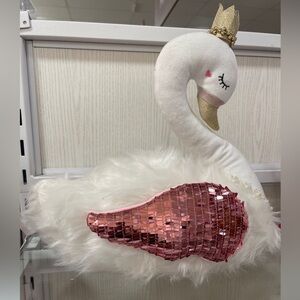 Valentine Swan Pink Sequin and Faux fair plush/pillow w/Crown NWT Nicole Miller
