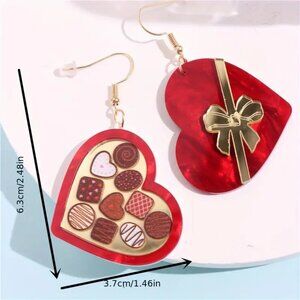 Valentine'S Day Heart-Shaped Acrylic & Dangle Earrings, (New)