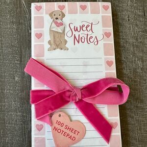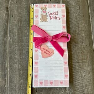 NWT adorable pink hearts bouquet yellow lab or golden retriever dog print notepad stationary. Great valentine gift. Has magnet on back.
