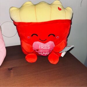 Charming plush fries bag in bright red and yellow. A heart pen and Rhinestone charm bracelet! 3 items!