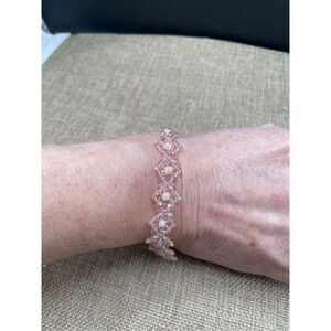 Artisan Beaded Pink Dainty Bracelet. Toggle clasp
