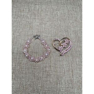 Valentines Bundle of 2 Pieces Pink Heart Broach pink Beaded Bracelet