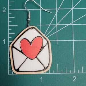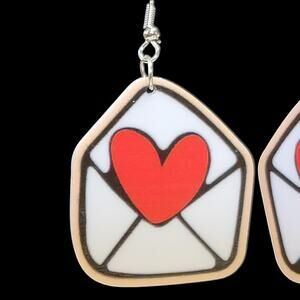 Valentines Day Earrings Heart Envelope Red White Dangle Gift for Her Jewelry