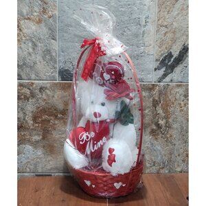 Valentines Day Gift Be Mine Bear Plush Love Heart in Gift Basket Stuffed Animal