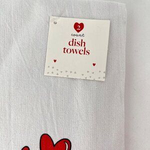 Valentines Day Gnome Dish Towels Set Of 8 100% Cotton Red & White