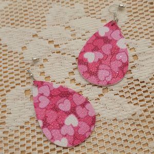 Valentine's Day Hearts Dangle Teardrop Earrings Pink Red 3 Inch Drop New