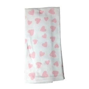 Valentine's Day Hello Love Kitchen Towels Floral Wreath Pink Hearts Cotton 2-Pc