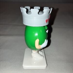 Valentine's Day M&M Vtg Green Empty Hollow Figurine W Crown / Hearts Good Shape