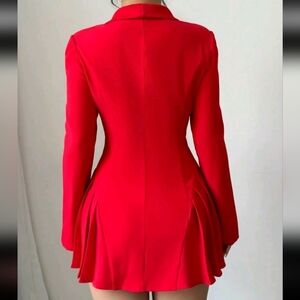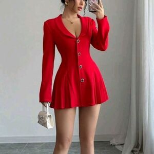 Valentine's Day Red Long Sleeve Gathered Waist Pleated Heart Neck A-Line Elegant