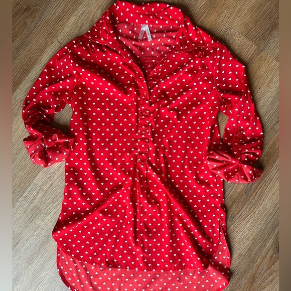 Valentine’s Day Red and white heart polka dot tunic blouse, size small