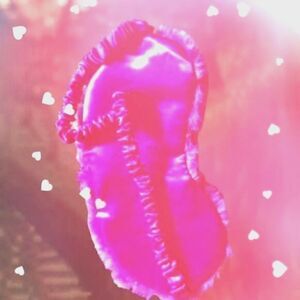 Has a SATIN Backing & elasticized strap to fit most sizes