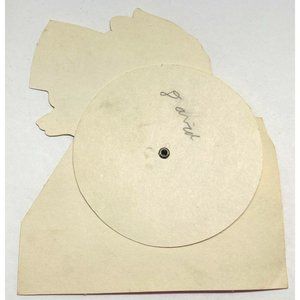 Good condition with light edge wear. There is light writing on backside. Eyes move to single or double. Measures about 5" tall.