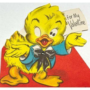 Valentines Day Vintage Greeting Card Duck Moving Eyes Yellow Duckling 1940s Anth