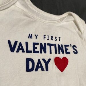 White long sleeve cotton onesie for baby’s first Valentine’s Day by Carter’s. Size is 9 months, excellent preloved condition! For boys or girls.