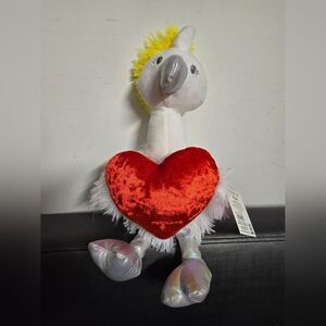 Valentine's Day White Flamingo with Red Heart Plush, 17 in, Way To Celebrate