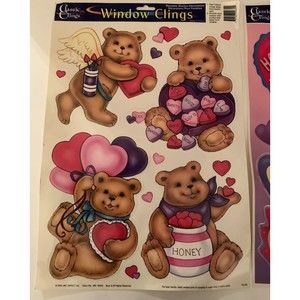 Lot of 2 NEW 2003 Valentine's Day Classic Clings Hearts Love Teddy Bears Candy Cupid Honey. Made in the USA