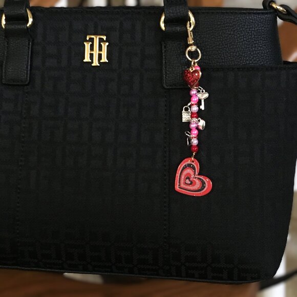 Valentines Hand Crafted, Beaded Heart Bag Charm, Keychain, Backpack Charm