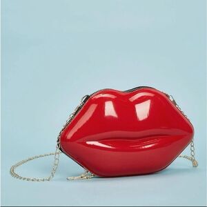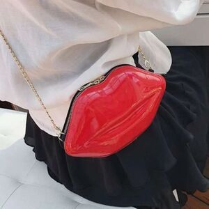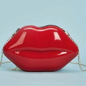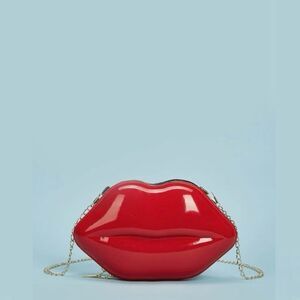 Barbiecore Red Lip PVC Vegan Leather Kiss Chain Bag