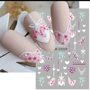 Valentine's day heart nail art stickers, red pink green decal design trees