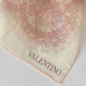 Valentino 26"x78" Pink Blush Lace Print Scarf Wrap Stole 100% Silk Made In Italy