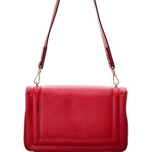 Elegant and stylish Valentino by Mario Valentino Alice Rock Leather Shoulder Bag. Crafted in Italy, this flame red leather bag features spike embellishments for a touch of edgy sophistication. The interior is lined with fabric and includes pockets for easy organization. Measuring 11 inches wide, 6.5 inches high, and 4 inches deep, this bag has top handles with a 13-inch drop and shoulder straps with a 22-inch drop. The fold-over flap with a turnlock closure adds a chic finishing touch. Made in Italy, this bag is a must-have accessory for any fashion-forward woman. Please note that all measurements are approximate and may have slight variations. Elevate your look with the Valentino by Mario Valentino Alice Rock Leather Shoulder Bag.