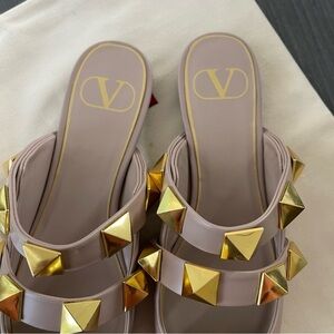 Valentino Beige Leather Rockstud-embellishment pointed-toe mules size 7.5 NEW!