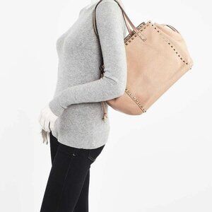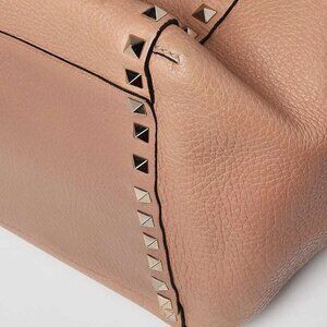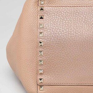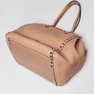 Valentino Beige Pebbled Leather Rockstud Drawstring Tote Bag
