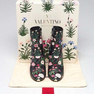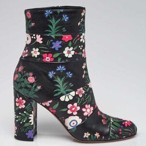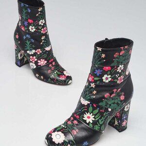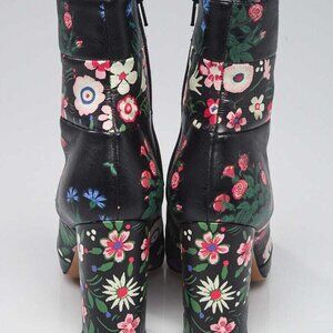 Valentino Black Floral Printed Leather Ankle Boots Size 4.5/35