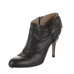 Step into timeless Italian elegance with these Valentino Black Leather Ankle Boots featuring feminine bow accents. Crafted in supple black leather with semi-pointed toes, these ankle boots strike the perfect balance of sophistication and edge. The delicate side bow detailing adds a couture-inspired touch, while the exposed side zip ensures easy wear.