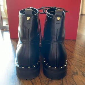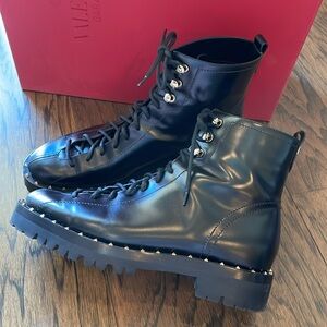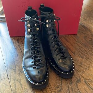 Black leather Rockstud combat boots in great pre-owned condition. Worn only a handful of times. Minor creasing and scuffs on inner shoe (see photos) not noticeable and can be polished out