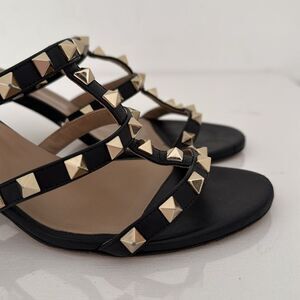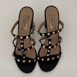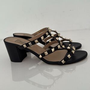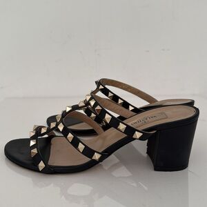 Valentino Black Leather Rockstud Open Toe Heels Sandals Shoes Size EU 36.5 6.5