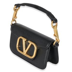 Valentino Black Leather Vlogo Mini Locò Bag