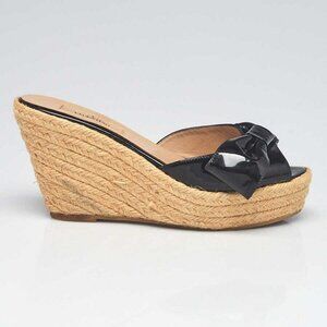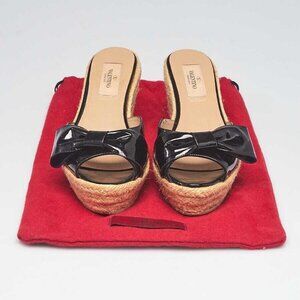 Valentino Black Patent Leather Espadrille Bow Wedges Size 5.5/36