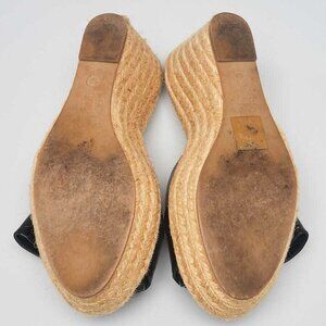 The mix of patent leather with the espadrille wedges gives these Valentino sandals a versatile look that you will love to wear! Featuring natural espadrille braided rope wedges and high-gloss black patent leather uppers. Leather lined upper and a padded insole makes for a comfortable fit perfect for any occasion, casual or fancy!