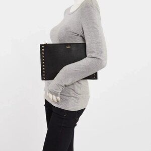 Valentino Black Pebbled Leather Large Rockstud Flat Pouch Bag