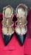 Valentino Patent Rockstud Caged Pump 100MM. Retail $1,190. EUC. Step out in style with these Valentino Rockstud heels. Featuring a striking black color, these shoes are perfect for any occasion. The iconic Rockstud design adds a touch of elegance and sophistication. Wear on heel noted, Heel taps will need to be replaced in a few more wears but are included. Two stud replacements and receipt also are included with original box.