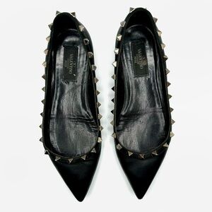 Valentino Black Rockstud Pointed Toe Sandals Ballerina Ballet Flats Sandals