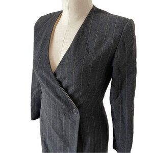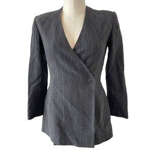 Valentino Blazer Jacket Striped Charcoal Grey Faux Wrap Wool Blend Sz XS Small