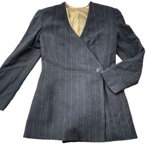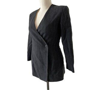 Valentino Blazer Jacket Striped Charcoal Grey Single Button Faux Wrap Wool Blend size range XS to Small