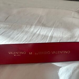 Add a touch of elegance with this Valentino belt. Striking red leather paired with a signature gold buckle.