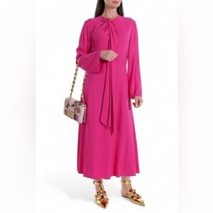 Valentino Bow Neck Long Sleeve Matte Cady Midi Dress Sz 48