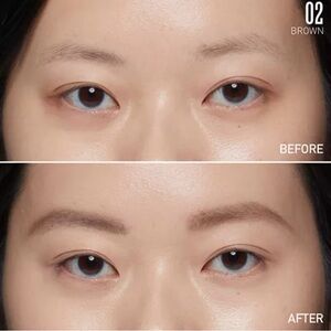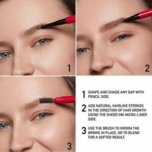 A 3-in-1 long-wear eyebrow pencil, with a liquid ink micro-liner to fill, eyebrow pencil to shade and brow brush to blend and comb.