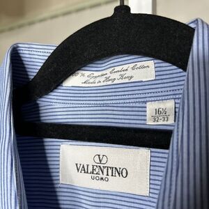 Valentino Button Up Dress Shirt Striped Blue and White Egyptian Cotton 16.5