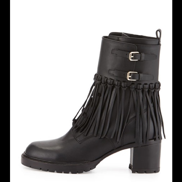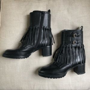 Valentino Combat Ankle Boots Fringe Buckles Block Heel US 6.5