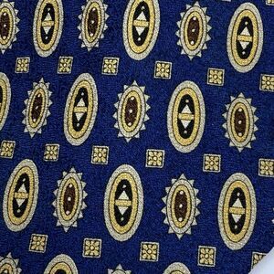Attractive Valentino Garavani made in Italy, blue, brown, gold, cream, geometric 100% silk classic luxury designer neckwear. In great preowned condition with blue logo silk behind point showing a minor stain shown in eighth picture.. Comes from a smoke free home.