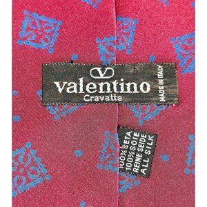 Valentino Cravatte Men's Silk Tie Red & Blue Geometric Pattern Made In Italy 248