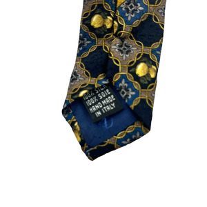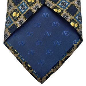 Valentino Cravatte Vintage Mens Sil Tie Italy Blue Gold Geometric Pattern. Tie Length: 57 1/2 Tie Width: 4