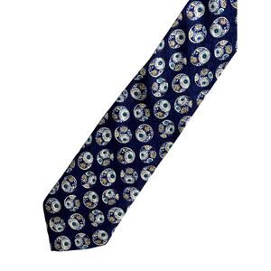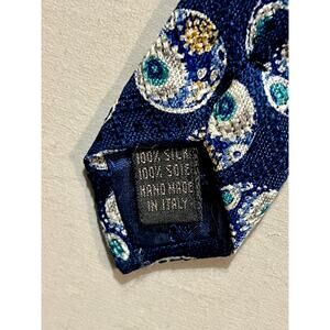 Valentino Cravatte Hand Made Vintage Tie Made In Italy Blue White 100% Silk Geometric Woven Necktie