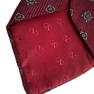 Add a touch of classic elegance to your wardrobe with this beautiful Valentino Cravatte tie. Made in Italy from 100% silk, this red tie features a classic geometric pattern that is both timeless and sophisticated. Measuring 58 inches in length and with a classic width, this tie is perfect for any occasion and will complement any outfit. Whether you are dressing up for a formal event or adding some flair to your everyday work attire, this tie is sure to impress. With its high-quality construction and attention to detail, it is no wonder that this tie is a must-have for any fashion-conscious man. Great condition. Bar tack stitch is missing. No rips/holes/tears/stains/discoloration/snags. Kept in a smoke/pet free home.