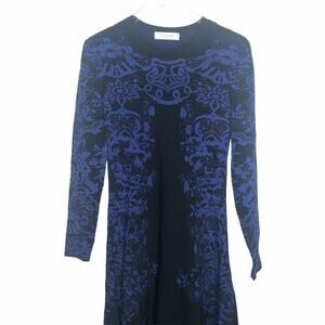 Valentino Delft Jacquard Long Sleeve Midi Sweater Dress Knit Blue M $3960 2020